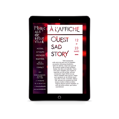 Cette charte graphique illustre plusieurs aspects important de ce théâtre: l'univers de Broadway, celui du spectacle et le quartier populaire de belleville